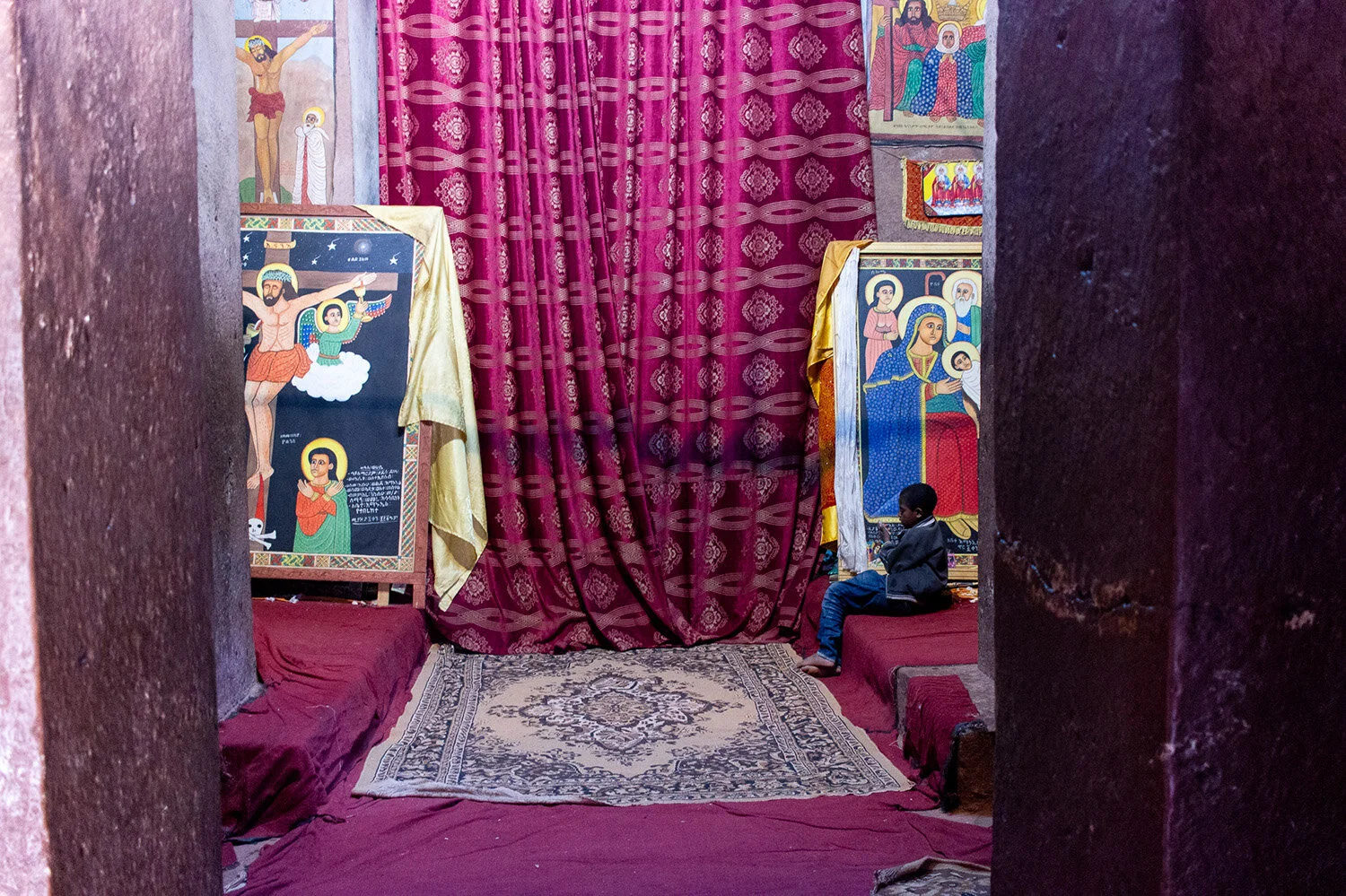 Ethiopia Mar 3 Written By Tom Berry Ethiopia contained some beautiful religious art. All of the examples here were taken from inside different rock-hewn churches - deep underground in Lalibela, or in Tigray, high up in remote mountain spots. ethiopiareligious+artpaintings Tom Berry